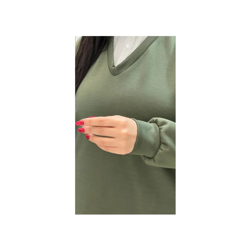 رسمة فيونكة (Papillon) أنيقة مطرّزة بعناية، تجمع بين الخطوط الرفيعة واللمسة اللامعة لحبات دقيقة تضيف بريقًا راقيًا دون مبالغة ✨ التصميم ناعم وأنثوي، كيعطي لمسة فخمة وعصرية فاللبسة، مناسب للإطلالات اليومية الأنيقة وكيرفع من قيمة القطعة بشكل واضح الكطمة مزودة بأكمام طويلة مصممة بتفاصيل دقيقة تمنحها أناقة وراحة في نفس الوقت، مع نهايات مصقولة تضيف لمسة عصرية. قصة العنق على شكل V ناعمة ومتناسقة، تمنح الكطمة طابع أنثوي أنيق وتبرز الرقبة بطريقة راقية دون المبالغة