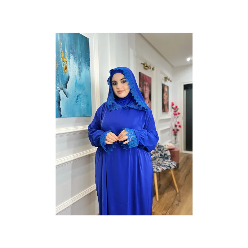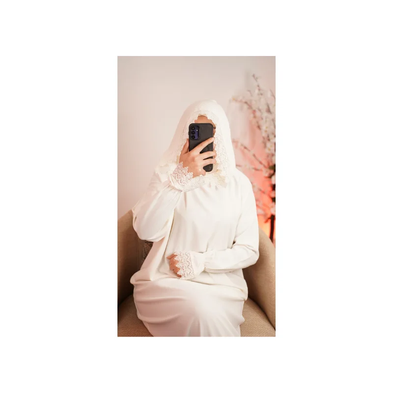 عباية صلاة أنيقة ومحتشمة، مخدومة بثوب كريب روزا عالي الجودة، يتميز بالنعومة والخفة مع انسيابية مريحة أثناء اللبس. تصميم عملي وراقي مناسب للصلاة والاستعمال اليومي، مع لمسة دونتيل راقية تزيدها أناقة دون مبالغة.